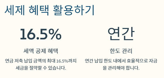 세제 혜택은 단순히 세금을 줄이는 데 그치지 않고, 절감된 세금을 추가 투자에 활용하여 장기적인 자산 증식에 기여합니다. 이를 통해 노후 자금을 더욱 빠르게 증대시킬 수 있습니다.